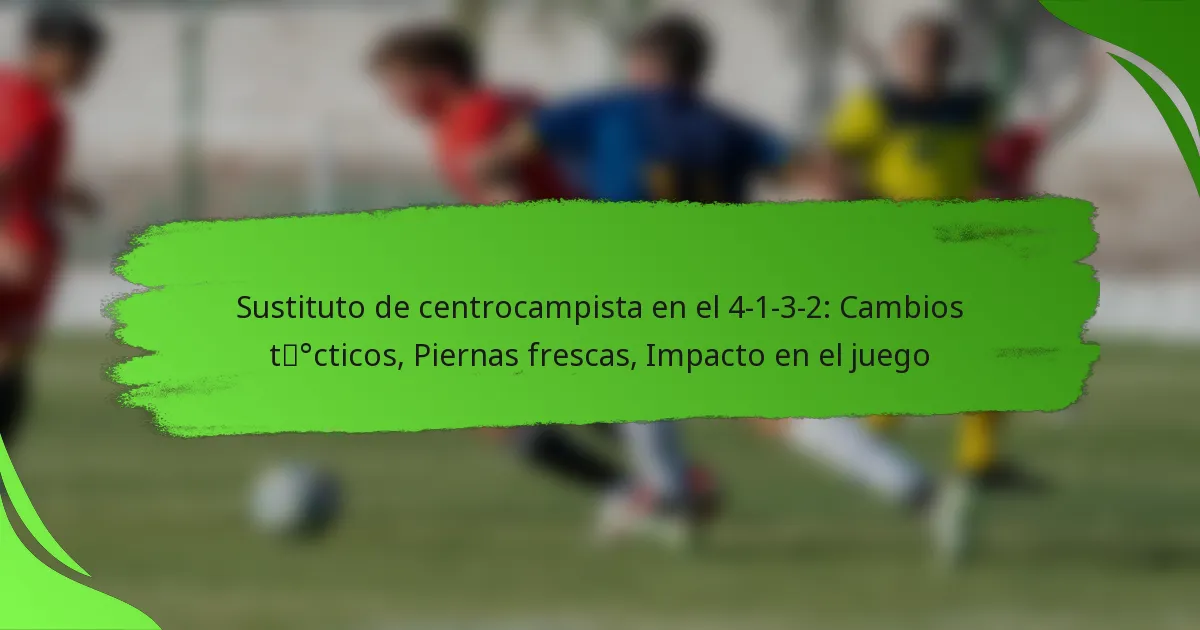 La sustitución de un centrocampista en la formación 4-1-3-2 puede llevar a ajustes tácticos cruciales que mejoran el rendimiento de un equipo. Las piernas frescas de un sustituto pueden cambiar el impulso e influir en la dinámica del juego, especialmente a medida que la fatiga se instala en las etapas finales. Un sustituto efectivo debe combinar condición física, habilidades técnicas y conciencia táctica para tener un impacto significativo tanto en defensa como en ataque.